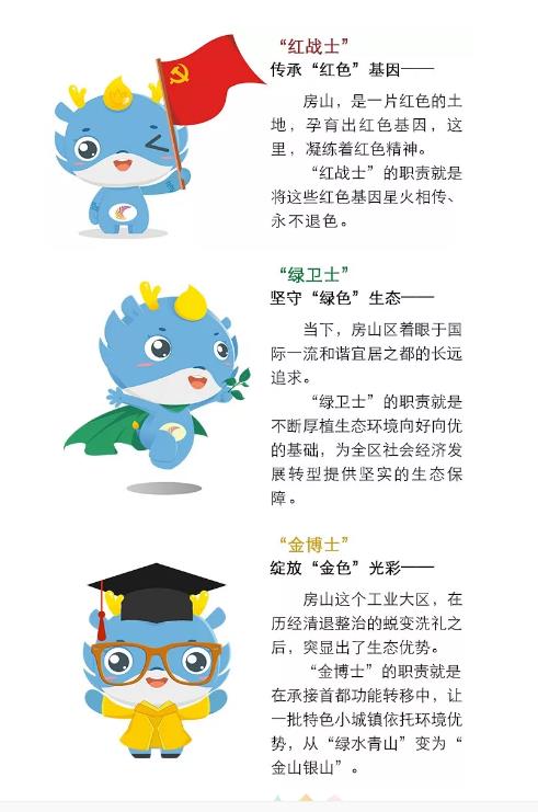 将产业转型这种抽象的概念拟人,红色旅游产业——红战士,绿色生态产业——绿卫士,基金小镇高新产业——金博士。用户理解起来更加直接,更具象化。